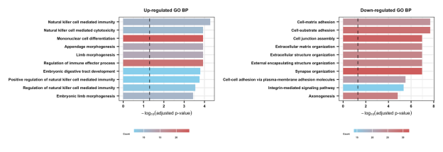 To interpret resistance-associated transcriptional programs, significantly regulated DEGs are subjected to pathway enrichment analysis. Enrichment is performed separately for upregulated and downregulated genes in resistant tumor cells, enabling directional interpretation of biological processes.
