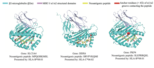 Three-dimensional structural modeling of peptide-MHC complexes was performed using AlphaFold2-Multimer to evaluate structural feasibility.