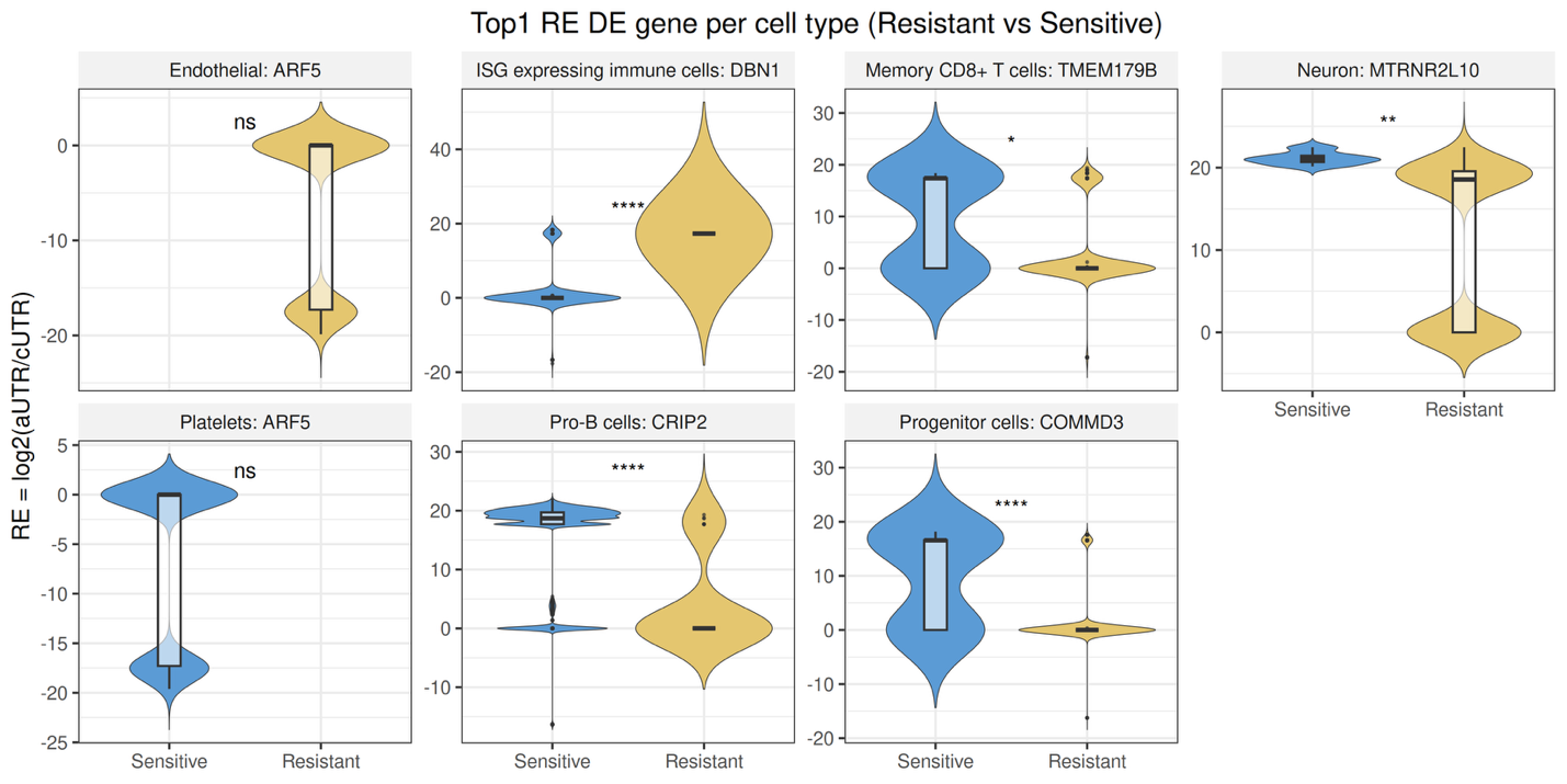 Differential APA analysis between resistant and sensitive groups was performed using Wilcoxon testing with multiple testing correction. This framework enables systematic characterization of post-transcriptional regulation across malignant and nonmalignant cell types.