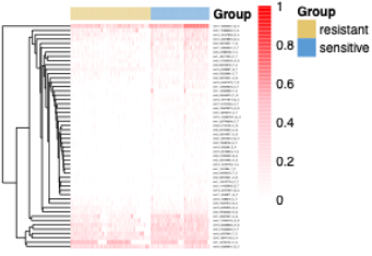 Differences between resistant and sensitive groups were assessed using Wilcoxon tests and visualized using boxplots.
